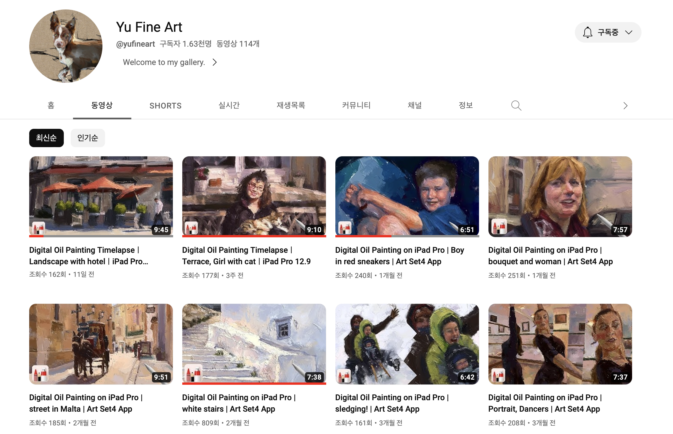 유튜브에서 검색하다 보니 Art set 앱으로 몇 년 전부터 굉장히 오랫동안 그림을 그려온 유튜브 채널을 찾았다.